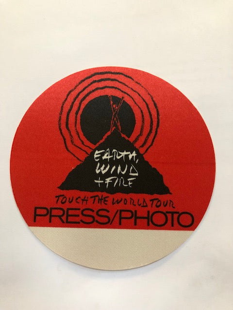 $15.00| /Earth Wind & Fire - Touch the World Tour 1988 - Backstage PassSelling The Collectors CollectionVintage 3 3/4" diameter Earth Wind & Fire OTTO cloth "Press/Photo" backstage pass from the 1988 Touch the World Tour. Uncommon. Excellent unu... View full details$15.00| /Sale