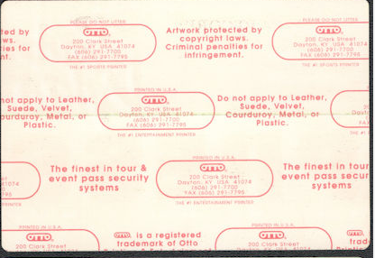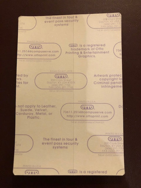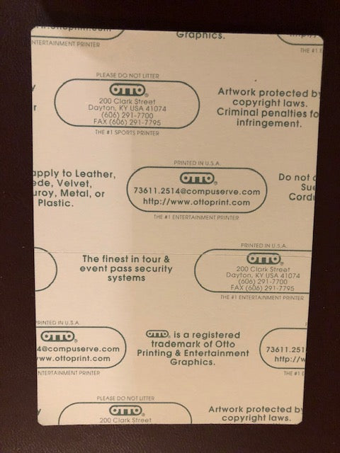 Selling The Collectors CollectionVintage cloth OTTO 4 1/4" backstage pass from the Never Ending World Tour 1993. Excellent and unused condition