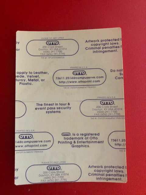 Selling The Collectors CollectionVintage cloth OTTO Backstage Pass from the North American Spring Tour. Assorted shapes and colors. Excellent and unused condition