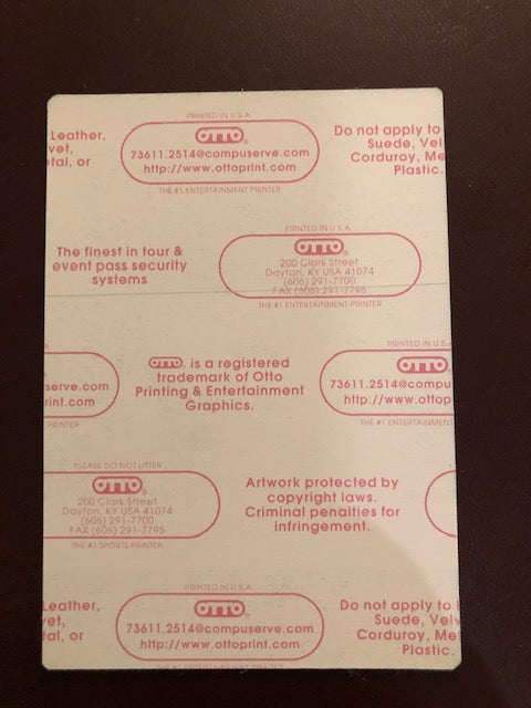 Selling The Collectors CollectionVintage cloth OTTO 4" backstage crew pass from the Never Ending Summer Tour in 2000. Excellent and unused condition