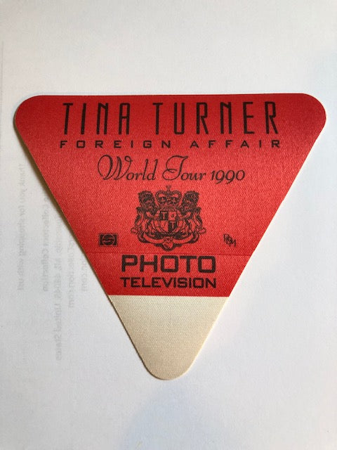 Selling The Collectors CollectionVintage rare 3 3/4" tall Tina Turner OTTO cloth "Photo Television" backstage pass from the 1990 Foreign Affair Tour. Excellent unused condition