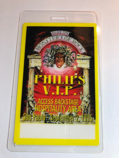 Selling The Collectors CollectionVintage 4 1/2" tall laminated OTTO "VIP" backstage pass from the 1995 Monsters of Rock Concert. It was held in Sao Paulo on September 2, 1995 and i...