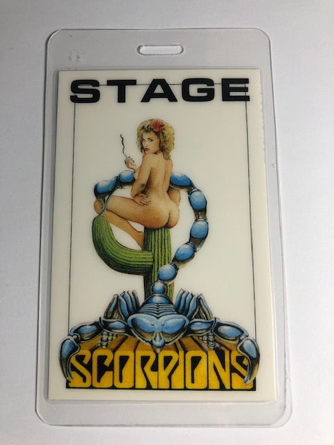 Selling The Collectors CollectionVintage 4 3/4" tall OTTO (manufacturer) laminated "Stage" backstage pass from the 1988-1990 Scorpions Savage Amusement Tour. Pinup nude Scorpion gi...