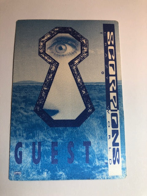 Selling The Collectors CollectionVintage 4 3/4" tall Scorpions OTTO cloth "Guest" backstage passes from the 1990 Crazy World Tour. They feature an eyeball looking through a keyhole...