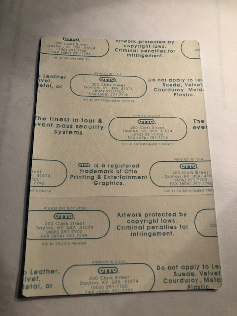 Selling The Collectors CollectionVintage 4 1/4" wide OTTO cloth after show only backstage passes from the 2002 Vapor Trails Tour. Assorted colors. Excellent unused condition.