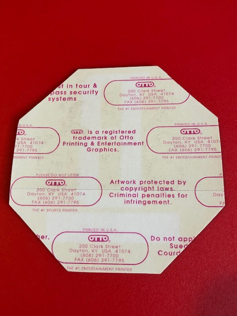 Selling The Collectors CollectionVintage laminated OTTO 4" octagon-shaped VIP Backstage Pass from the 1990 show. Excellent and unused condition