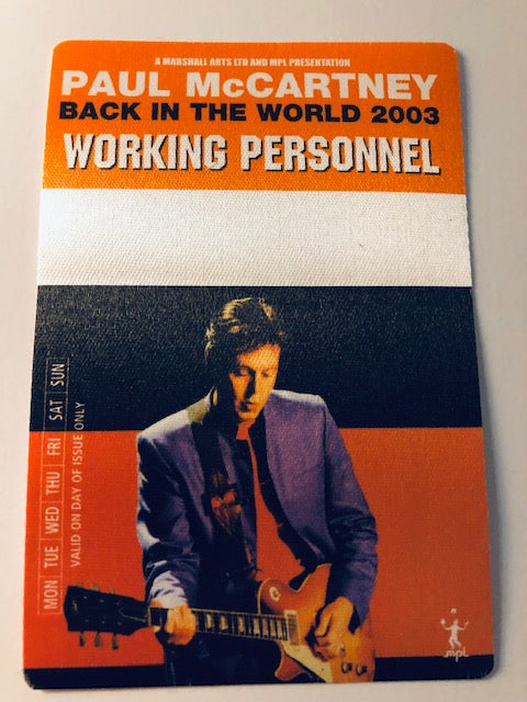 Selling The Collectors CollectionVintage 4 1/2" tall Paul McCartney OTTO cloth Working Personnel backstage pass from the 2003 "Back in the World" Tour. These larger cloth McCartne...