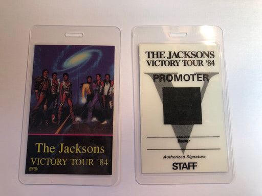 Selling The Collectors CollectionVintage 1984 4 1/4" tall laminated "The Jacksons" with Michael Jackson backstage pass from the Victory Tour. Showing both sides of the pass. Excel...